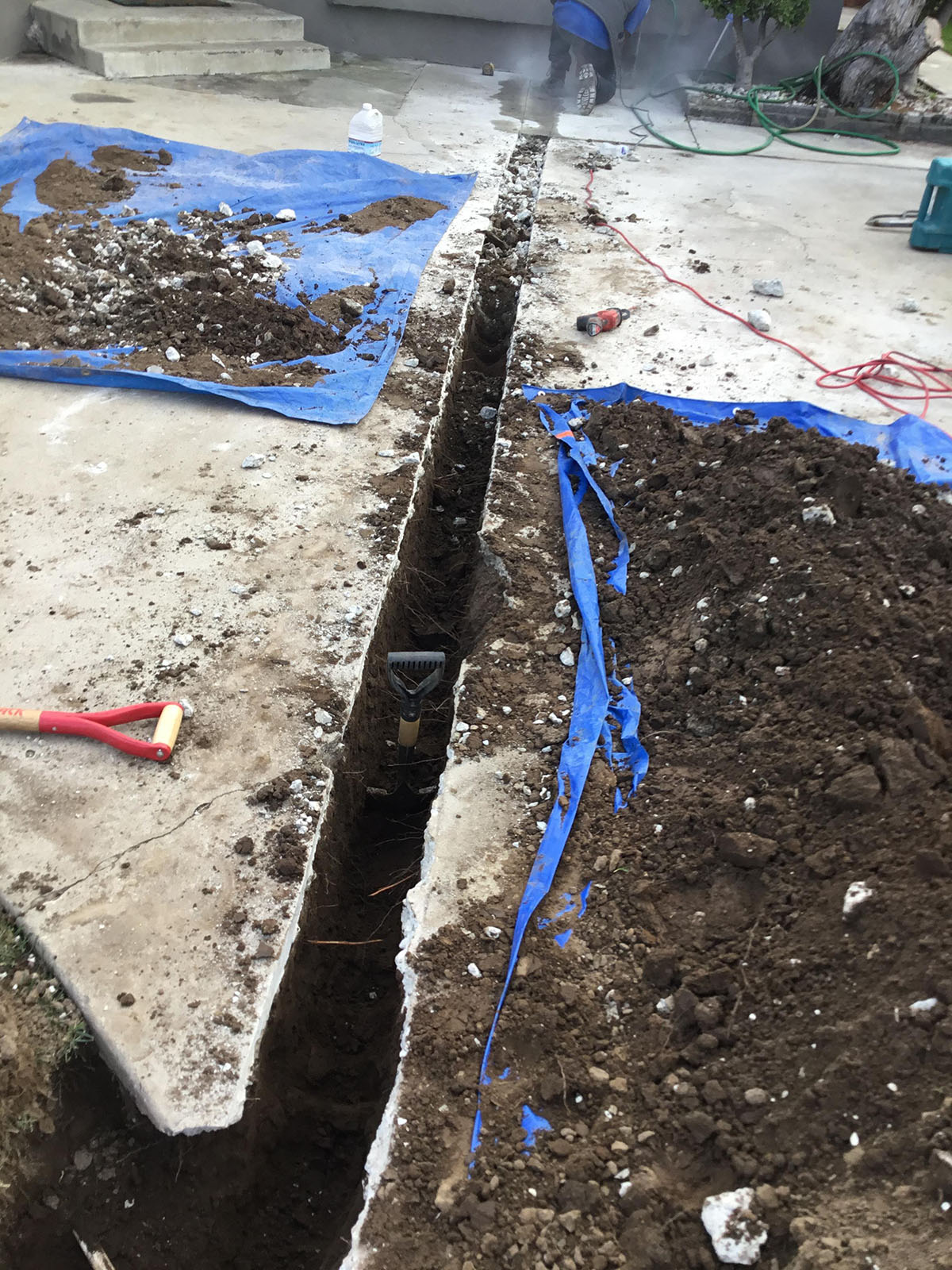 Team Rooter technician excavated out the main line under the house to expose the 4 inch pipe, technician then cut about 19 feet of mainline pipe and replaced with ABS pipe. 5 year warranty on parts and labor were given. Tech also hydrojetted the mainline to remove roots and blockage.